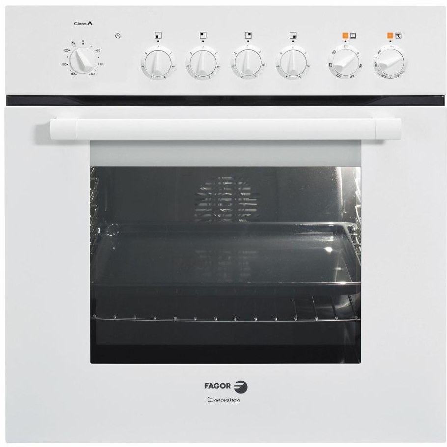 Fagor 6H-414 B. Oven type: Electric oven, Total oven(s) interior capacity: 51 L, Thermostat range (1st oven): 50/250. Colour of product: White. Timer type: Mechanical. AC input voltage: 230 V, AC input frequency: 50 Hz, Power: 2600 W. Width: 592 mm, Depth: 529 mm, Height: 595 mm