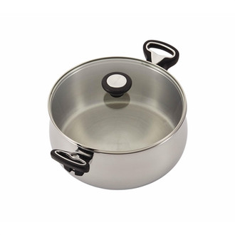 Shine in the kitchen, with the stylish, sturdy Farberware New Traditions Stainless Steel 14-Piece Cookware Set. New Traditions pairs the time-tested trust and reliability of Farberware with durable stainless steel construction and convenience that's ideal for busy homes and families. The cookware features traditional bell-shaped profiles with mirror-polished stainless steel exteriors that deliver a radiant touch of kitchen style; the skillets feature solid aluminum craftsmanship to ensure that these stovetop workhorses heat fast and even, with polished exteriors that coordinate with the rest of the set. Shatter-resistant glass lids provide a handy window on all the delicious cooking while sealing heat and moisture in. Handwashing the skillets is recommended to preserve the nonstick, and the rest of the pots and pans are dishwasher safe for effortless cleanup. This cookware set includes all the essentials for making memorable meals, including three handy Prestige® nylon kitchen tools - a slotted turner, slotted spoon and solid spoon - to get tasty dishes started right away. Oven safe to 350°F, the cookware set's handles feature classic Farberware styling, and most include hanging rings for convenient storage.