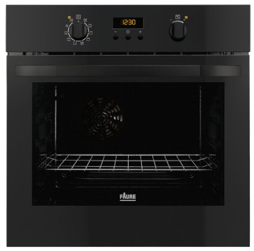 Faure FOP27001BK. Oven size: Medium, Oven type: Electric oven, Total oven(s) interior capacity: 53 L. Colour of product: Black, Control type: Rotary, Control position: Front. Energy efficiency class: A, Energy consumption (conventional): 0.85 kWh, Connected load: 2515 W. Width: 594 mm, Depth: 560 mm, Height: 590 mm