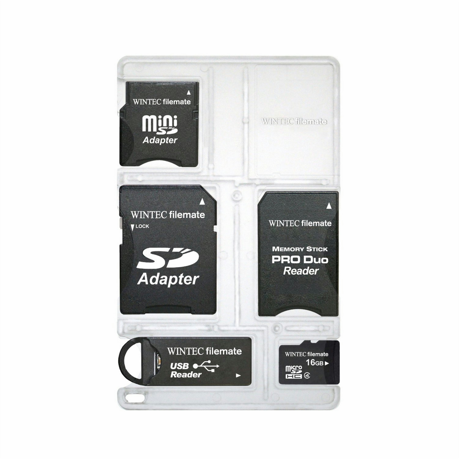 MicroSDHC, 16GB, Class 4, SD Adapter, miniSD Adapter, ProDuo Reader, USB Reader, Card Holder, Black