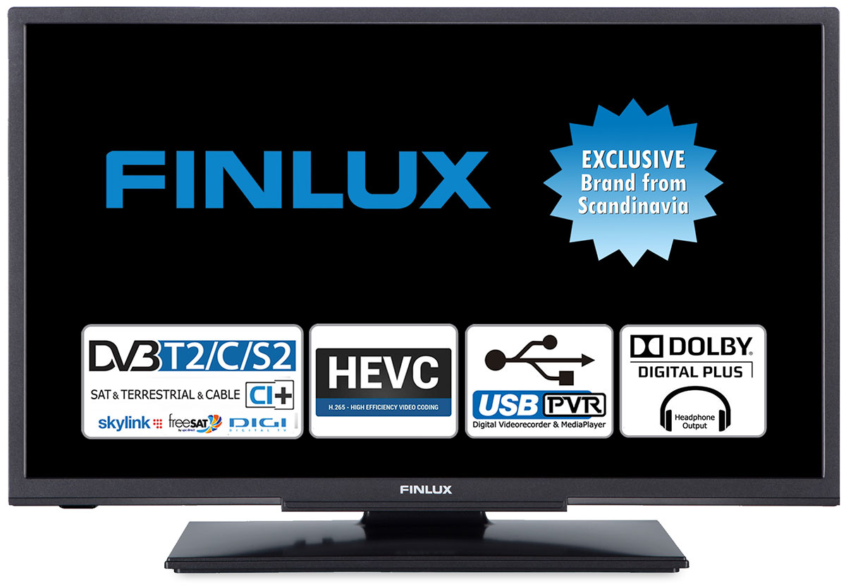 Finlux 24FHA4160. Display diagonal: 61 cm (24"), HD type: HD, Display resolution: 1366 x 768 pixels. Analog signal format system: NTSC 3.58,NTSC 4.43,PAL,SECAM B/G,SECAM D/K, Digital signal format system: DVB-C,DVB-S,DVB-S2,DVB-T,DVB-T2, Tuner type: Analog & digital. RMS rated power: 5 W. RF connector type: F, IEC. Teletext: 1000 pages, Audio formats supported: PCM,MP3,WMA, Image formats supported: GIF,JPG