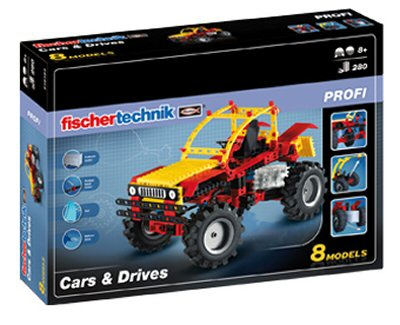 How does a balloon drive or a bending rod drive work? What is the difference between a friction drive and a rubberband drive. How can wind be used as a drive? This set provides a glimpse into how different types of drives work. The brawny offroad vehicle with functioning steering and suspension can also be combined perfectly with the Motor Set XM and Control Set for remote control. The instructional activity booklet provides a great deal of interesting information. For young engineers from age 8!