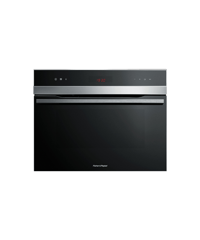 This built-in oven has 8 cooking functions and is finished in black reflective glass and stainless steel that blends elegant, minimalist aesthetic with design for durability, this oven matches the rest of Fisher & Paykel’s coordinated kitchen family.