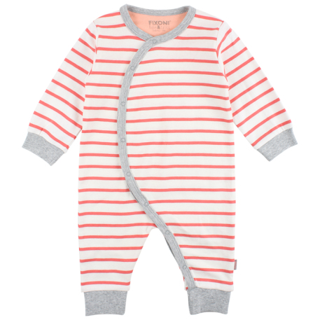 Striped playsuit from FIXONI with long sleeves and rib at hand and leg opening.