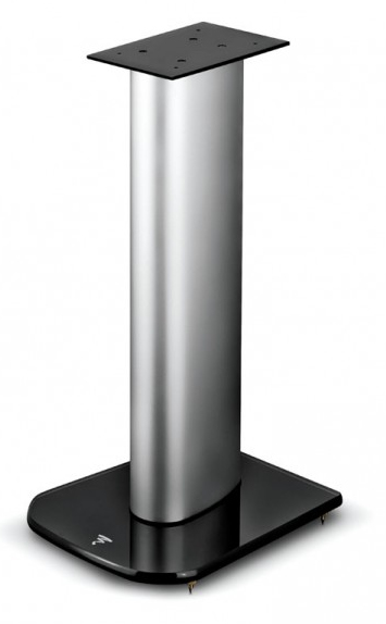 Stand dedicated to Aria 906 loudspeaker Black Satiny mounting plate, Matt Aluminium stand with cable pass-through, Black High Gloss tempered glass base, Rubber feet or spikes.