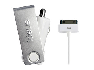 Made For Iphone Exclusive Design Car Charger, White. Includes Power/Sync Cable.