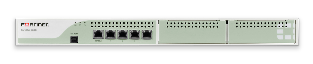 FortiMail 400C - 4 x 10/100/1000 RJ-45, 2 X 1TB, 100-240 VAC, 50-60, 181 W, 620 BTU/h, 4.5 kg