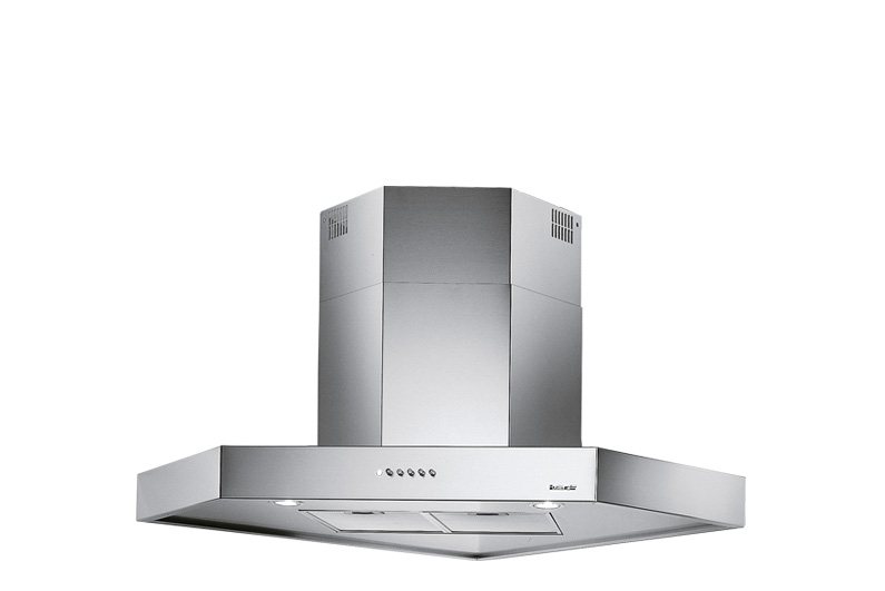 Corner suction hood with telescopic chimney section, 90x90 cm, brushed stainless steel