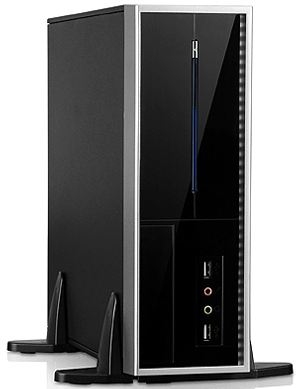 RS-338 - Slim-Desktop, mini iTX, 1 x 80mm, 1 x 5.25-inch external, 1 x 3.5-inch external, 1 x 3.5-inch internal, 2 x USB2.0, 1 x Mic, 1 x Headphone, black/silver