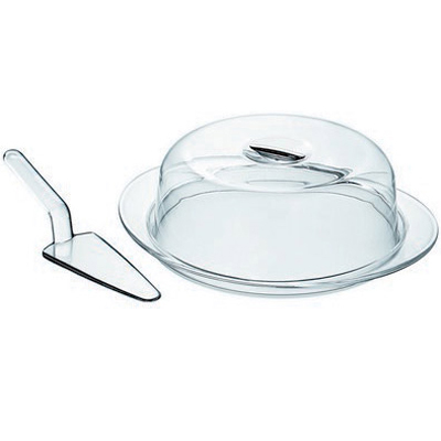 Cake serving set: cake dish, dome and cake slice, Transparent chrome