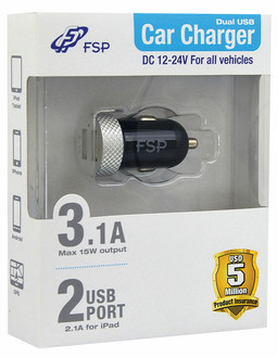 FSP lightest car charger ever! Features with fast charging total 3.1A(2.1+1) output, 2 USB port, and also supports any kind of vehicle, truck fits too!