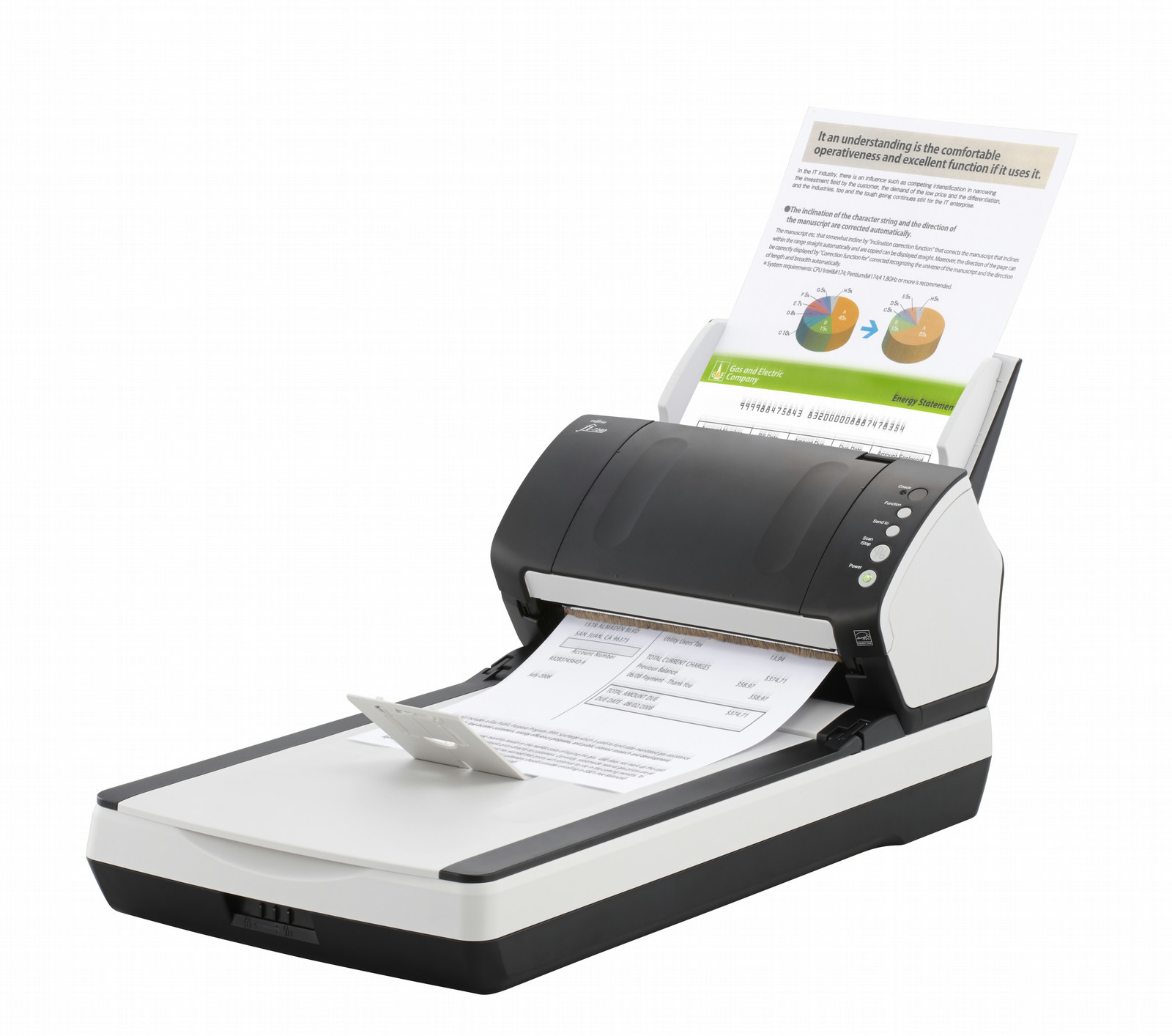 The fi-7240 model features an ultra fast built-in flatbed module that enables the scanning of diverse documents types such as those that may be bound, stapled or delicate.