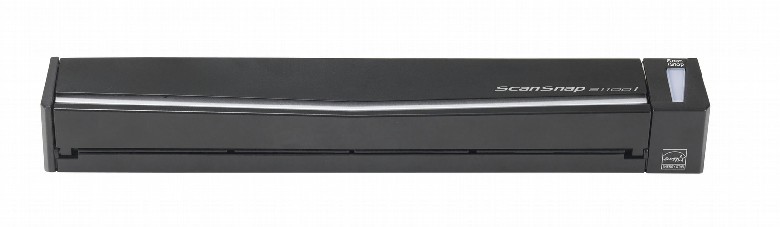 The ScanSnap S1100i document scanner pushes the limits of size for extreme portability while delivering smooth A4 size document scanning. All you need is your laptop and one USB cable to scan and share your documents anywhere, anytime. The S1100i delivers a snappy 7.5 seconds / page (approximately 8 ppm) scanning speed for color A4 documents at resolutions up to 300 dpi.