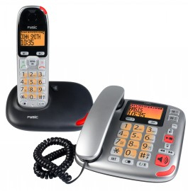 Fysic FX-5725COMBO Big Button dect phone. Type: DECT telephone, Recording time: 15 min. Mounting type: Desk, Colour of product: Black, Silver. Volume control: Digital. Phonebook capacity: 50 entries. Display: LCD, Backlight colour: Orange, Display diagonal: 4.57 cm (1.8")