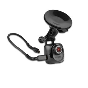 The camera has a built-in microphone for recording audio inside the car, which can be switched on or off via the nüvi 2585TV. It has its own SD™ card (supplied) that continuously ‘loop’ records (audio and video) as you drive. You can ‘lock’ recordings of interest to prevent file overwriting. It will record your GPS location and speed as you drive and synchronises it with the video so you can playback the video synchronised with your location on a map and your speed.