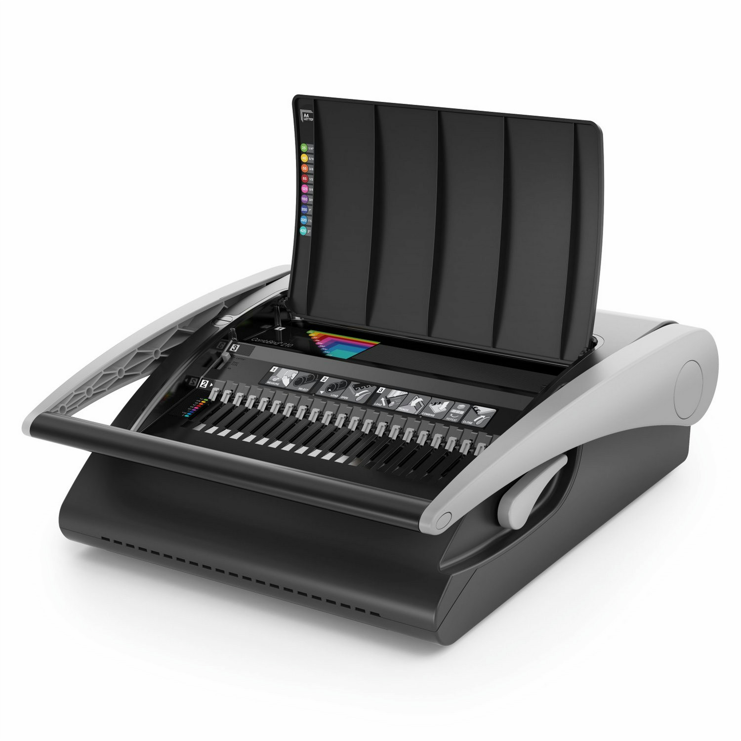 Binding doesn't get any simpler! The CombBind C210 is ideal for offices with frequent binding requirements. It combines a punch capacity of up to 25 80gsm sheets with a binding capability of up to 450 sheets using 51mm spines. Unique gravity fed low force paper punching make binding documents easier and faster than ever. Choose colour coded ProCombs for maximum productivity.