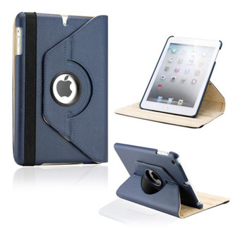 Dark Blue 360 Degree Rotating PU Leather Case Cover with Swivel Stand for iPad Mini
