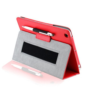 iPad mini Magnetic Smart Cover Microfiber Leather Case Handheld Belt Stylus Holder, Red