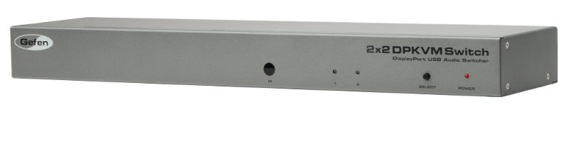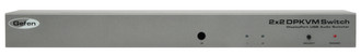 Switch between two computers (each using two graphic DisplayPort outputs) effortlessly, using the Gefen 2x2 DPKVM Switch. With the output utilizing two displays and two USB 2.0 ports, users can switch audio, video and USB for each computer. Access two computers from one workstation without having to use a network. Switch through the front panel "select" button, using the supplied IR remote control, the RS-232 serial port, or the IP control. The 2x2 DPKVM Switch is compatible with all operating systems using DisplayPort and USB.