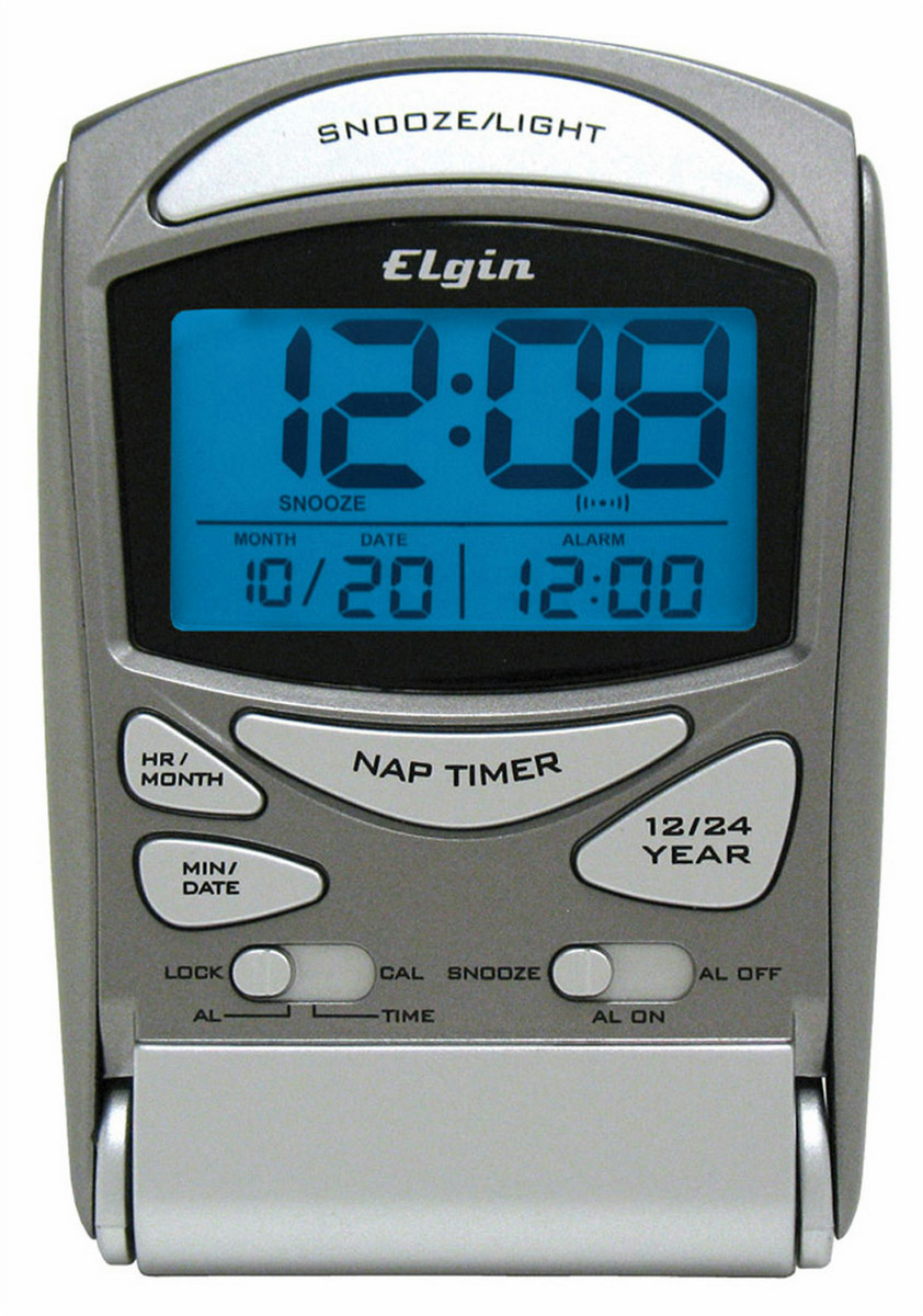 - Pack: 4.25"L x 5"D x 4.5"H - Desc: 1.1" Travel alarm - Titanium - Disp. calendar, alarm, time - Maximum nap time up to 4 hours - 12/24 hour program selector