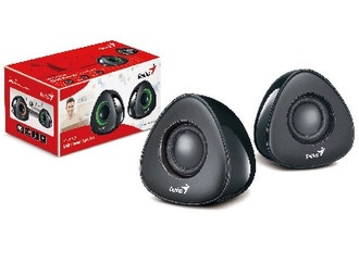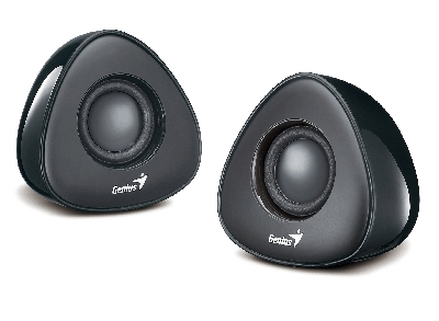 The speaker have a rounded triangle shape with a sleek black surface and looks classic next to your notebook or desktop PC