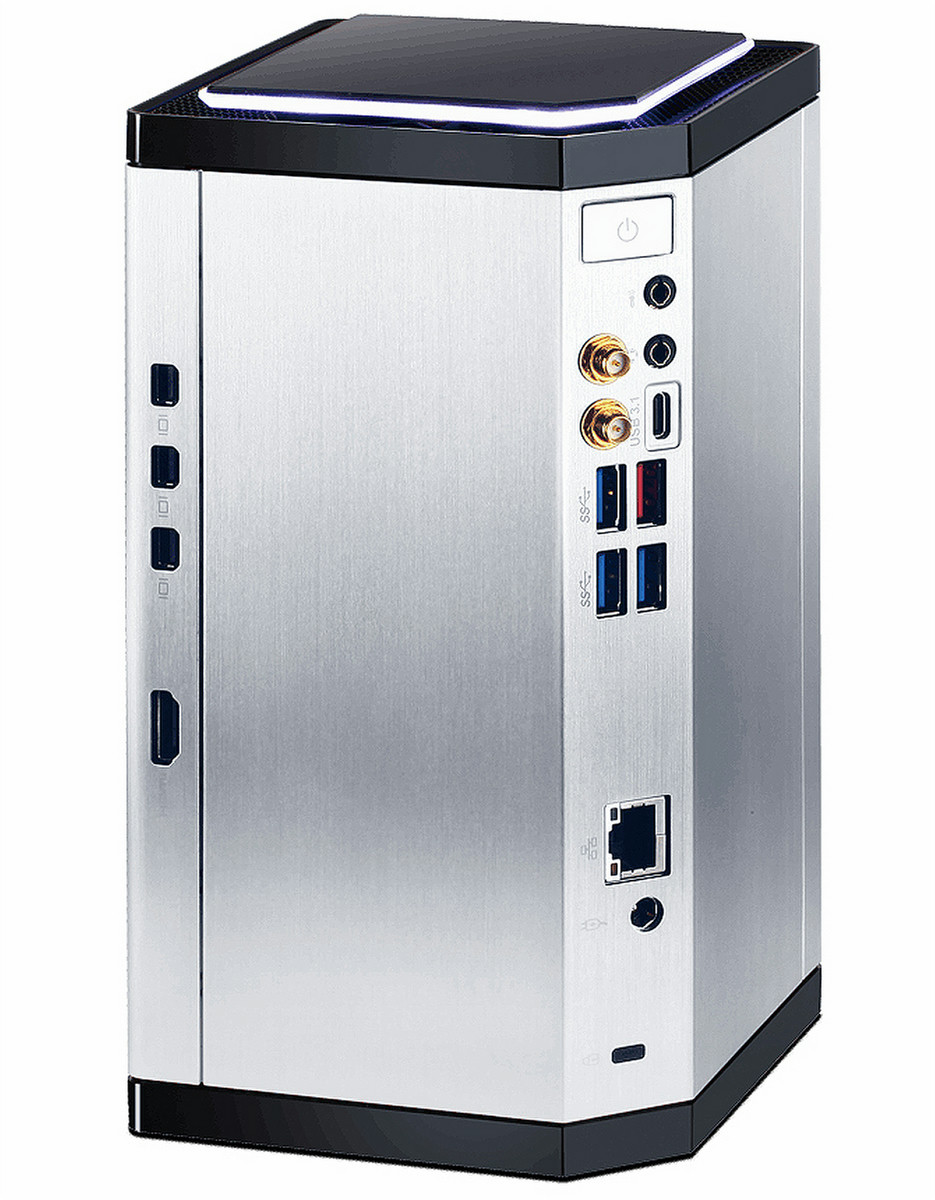From the looks of the exterior of the unit it's obvious that a lot of innovation went into the development of the GIGABYTE BRIX Gaming UHD. Many hours have been spent on improving performance of the cooling system, thus we created this ergonomic thermal design that allows GIGABYTE to keep the system cool and at the same time as quiet as possible. The components within this PC were arranged to reduce air resistance to allow maximum airflow so the high performance CPU and GPU can remain cool even during heavy loads while the user is gaming or stressing the performance of the system. With all this innovation in the BRIX Gaming UHD's development we were able to reduce the acoustic level under peak load to a mere 36dB—quieter than sound levels in a library.