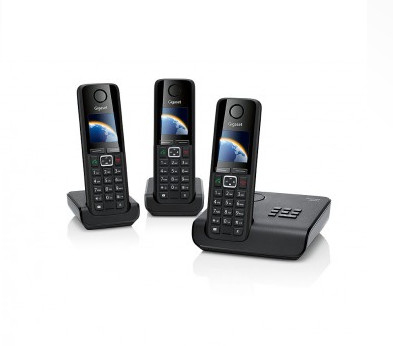 The Gigaset A630A Trio is the cordless phone with an integrated answering machine plus an additional handset, that`s a true technical performer. The answering machine with up to 25 minutes of recording time ensures reliable reception of messages. Reading and navigating the phone’s menu are convenient, thanks to the large colour display with four colour schemes to choose from. The long talk time of up to 20 hours and long standby time of up to 300 hours mean that you can talk for extended periods and as frequently as you like without worrying about the phone’s battery life. And ECO DECT with no radiation makes the Gigaset A630A Trio an environmentally friendly choice in telephony.