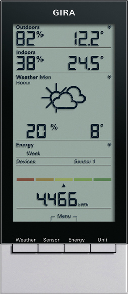 - Display of energy measurement data: Electricity and gas in the entire home (requires electricity meter sensor 2356 02 and gas meter sensor 2357 02).