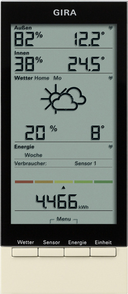 - Display of energy measurement data: Electricity and gas in the entire home (requires electricity meter sensor 2356 02 and gas meter sensor 2357 02).