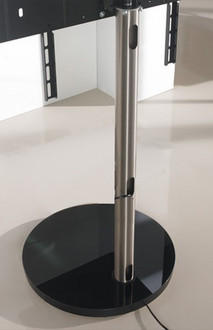Furniture for LCD/LED screens up to 55” and 30 kg. Rotation. MDF, tempered glass and steel finished inox structure. Concealed cable management. Max vesa 600x400 mm. Assembled.