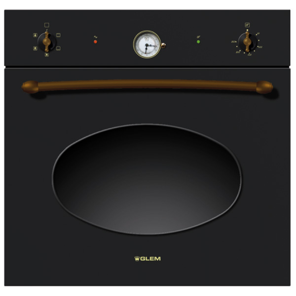 Glem GFT54AN. Oven type: Electric oven, Total oven(s) interior capacity: 54 L, Total oven power: 2250 W. Colour of product: Anthracite, Control type: Rotary, Control position: Top front. Energy efficiency class: A, Power consumption (typical): 2250 W, AC input voltage: 220-240 V. Width: 597 mm, Depth: 525 mm, Height: 591 mm. Installation compartment dimensions (WxDxH): 560 x 550 x 583 mm