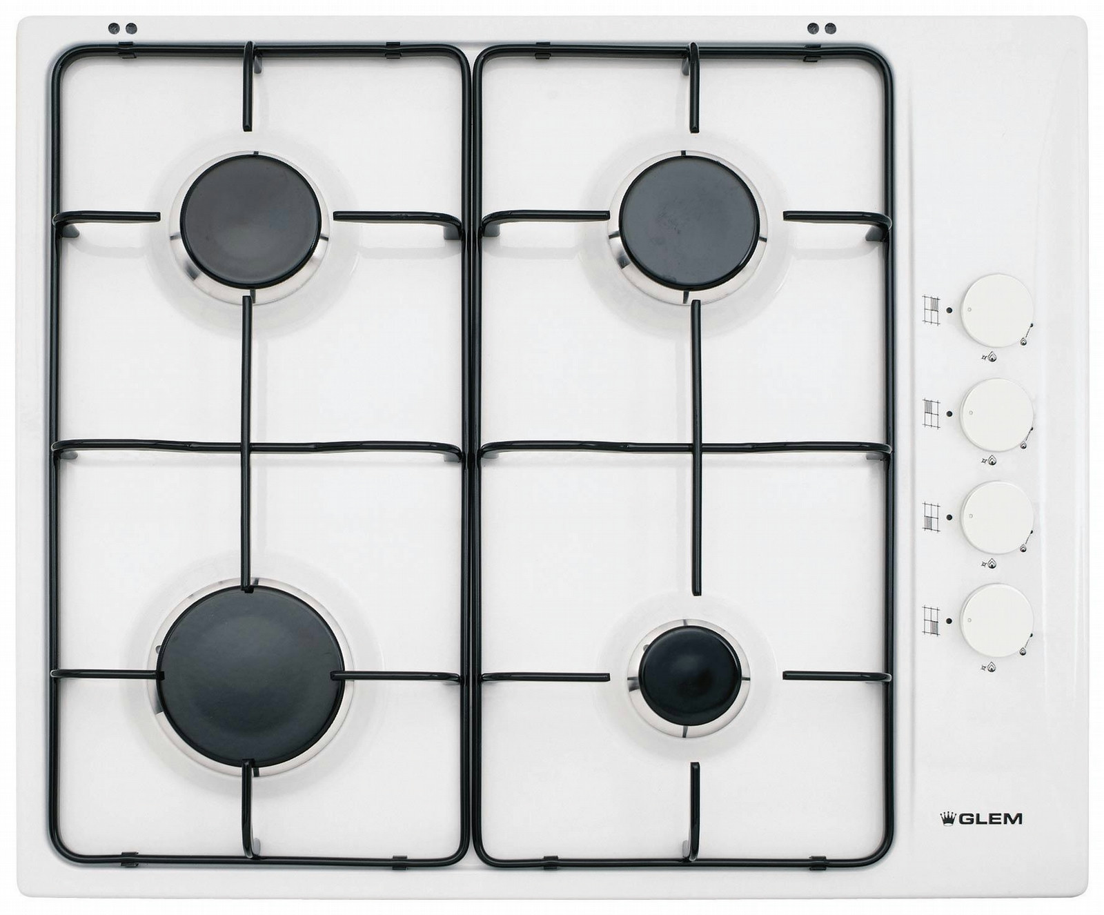 Glem GTL64VWH. Case design: Built-in, Hob type: Gas hob, Top surface type: Enamelled. Control type: Rotary, Control position: Top right
