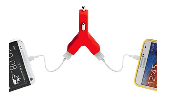 Y-shape design Dual USB Port Car Lighter Socket Charger, red
