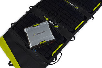 Designed to power all the gear in your kit, the Sherpa 100's versatile array of ports include two ultra-fast, smart USBs for phones and tablets, a 12V port for lights, an innovative port specifically for laptops, and a detachable AC inverter for DSLR cameras. The Sherpa 100 recharges from the wall, car, or from the sun with the included Goal Zero’s Nomad 20 solar panel.