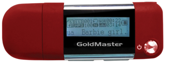 GoldMaster MP3-102. Type: MP3. Colour of product: Red. Player media type: Flash-media, Total storage capacity: 2 GB. Display: LCD. Audio formats supported: MP3, WAV, WMA, Document formats supported: TXT