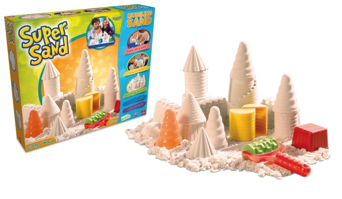 Goliath Super Sand Giant. Colour of product: Natural, Recommended age (min): 4 year(s), Playing time: 40 min. Weight: 1.35 kg. Package type: Paper box. Number of castle molds: 4 pc(s), Number of geometric-shaped molds: 6 pc(s)