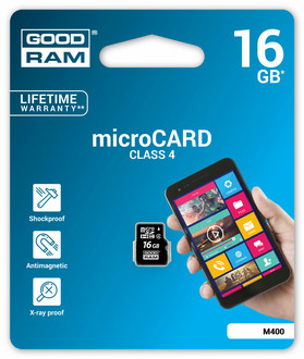 We have designed microCARD M400/M40A class 4 bearing in mind mobile devices. That is why they are an ideal solution for mobile phones, navigations or music players. Fast reading and writing speeds and our lifetime guarantee speak undeniably in favour of GOODRAM microCARDS. You can also use GOODRAM microCARD as a standalone item as well as convert it into classic SD card thanks to high quality adapter!