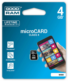 We have designed microCARD M400/M40A class 4 bearing in mind mobile devices. That is why they are an ideal solution for mobile phones, navigations or music players. Fast reading and writing speeds and our lifetime guarantee speak undeniably in favour of GOODRAM microCARDS. You can also use GOODRAM microCARD as a standalone item as well as convert it into classic SD card thanks to high quality adapter!