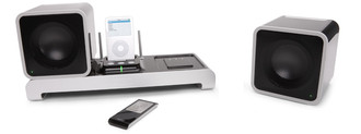 The Evolve speaker system comprises a charging base and two cube-shaped speakers. Talk about stereo separation -- simply place the Evolve cubes wherever you want to hear the music. You can even move them into the next room with you. There are no entangling wires to hassle with.