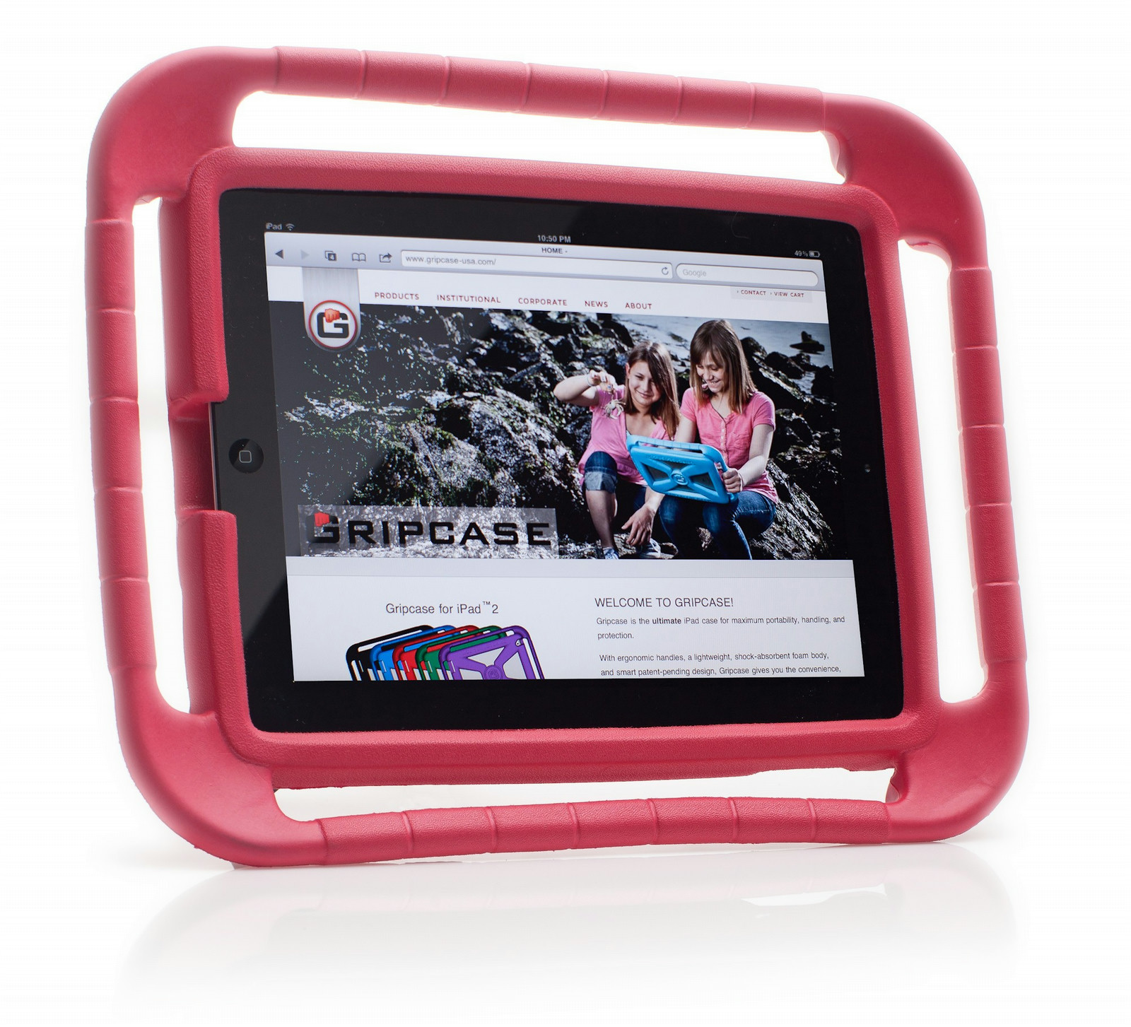 The patented Gripcase for iPad 2, 3, and 4 is designed to meet the complete tablet protection needs of students, teachers and parents. The EVA foam protects your iPad 2, 3, and 4 from damage due to bumps and drops, and the safety bumpers and crush zone corners allow your young ones to go virtually anywhere without fear of damaging your iPad.