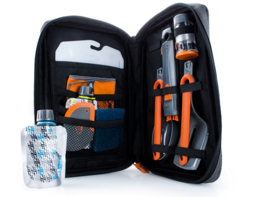 This integrated, 11 piece set neatly stores in a soft-sided, zippered case, ideal for cooking larger meals on the trail. A perfect set to use with our full size cook sets the entire set weighs in at just over a pound and stows in an exquisitely organized case.