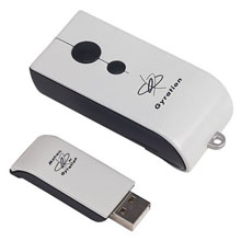 2.4GHz revolutionary key fob size wireless air mouse with 100’ range - 2GB flash memory for data storage/retrieval - “store your presentations on the flash drive and leave the PC” - mouse works in the air - RF radio technology with 800 channels requires no line of sight - digital security signature - USB dongle receiver - PC and MAC compatible - 2 button mouse, SWIPES button for motion activated control and effects, durable loop for key chain attachment. Package includes: GYROTRANSPORT mouse, USB receiver with 2GB flash memory, 1 AAA battery, GyroTools Presentation Edition media control software for Windows loaded on flash drive.