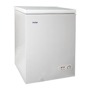 Haier’s 3.5 cu. ft. capacity Chest Freezer with space-saving flat-back design and aluminum interior holds approximately 122 lbs. of Frozen food. Convenient features include Easy-access defrost drain to facilitate manual defrost, and adjustable thermostat control. A removable basket lets you compartmentalize the space as you like.