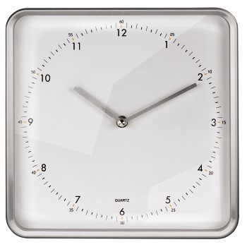 - Quartz clock with analogue time display - Silent movement - Large, white face with Arabic numerals and second hand