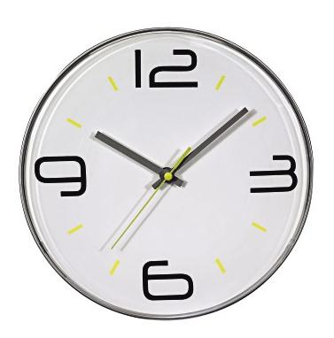 - Quartz clock with analogue time indication - Large, white face with Arabic numerals and second hand