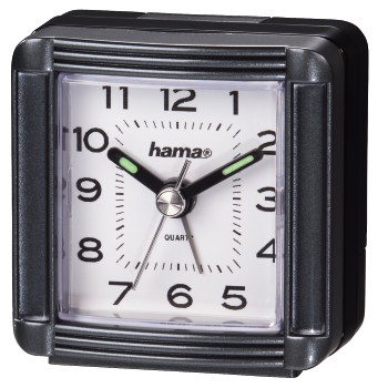 - Travelling alarm clock with analogue time and alarm time display