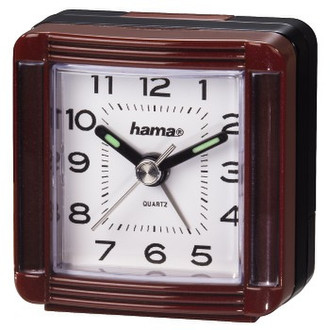 - Travelling alarm clock with analogue time and alarm time display