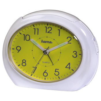 der ideale Wachmacher auf Reisen fluoreszierender Stunden- und Minutenzeiger erleichtert das Ablesen der Uhrzeit im Dunkeln gelbes Ziffernblatt mit arabischen Zahlen eine Alarmzeit einstellbar Schlummerfunktion Hintergrundlicht Verbraucherhinweis: Der Sek