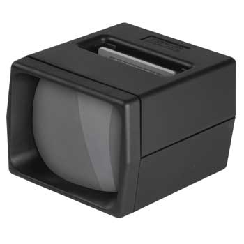 - For 5 x 5 cm mounted slides. 2.5 x magnification. - With illumination. For 2 AA-type 1.5 V batteries - 60 x 50 mm lens. Supplied without batteries