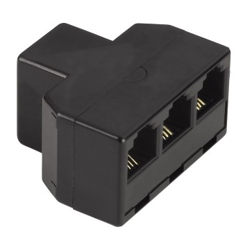 - Modular socket 6p4c - 3x modular socket 6p4c. - 3way splitter modular. - For connecting up to three devices to one modular jack. - Colour: Black.